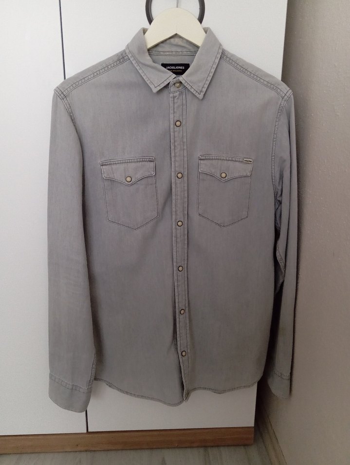 Jack jones Gri Denim Düğmeli Erkek Gömlek