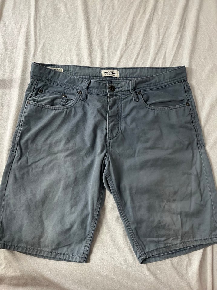 Düğmeli, bol kesim gri denim şort. Günlük kullanım için rahat ve desensiz, trend sokak stili sunar. Defosu yoktur.