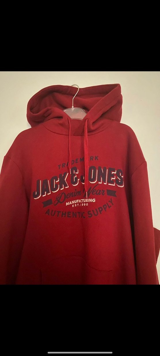 Jack & Jones kırmızı kapüşonlu sweatshirt, uzun kollu ve bol kesimdir. Baskılı tasarıma sahip, yumuşak ve sıcak kumaştan üretilmiştir. Günlük kullanıma uygundur.
