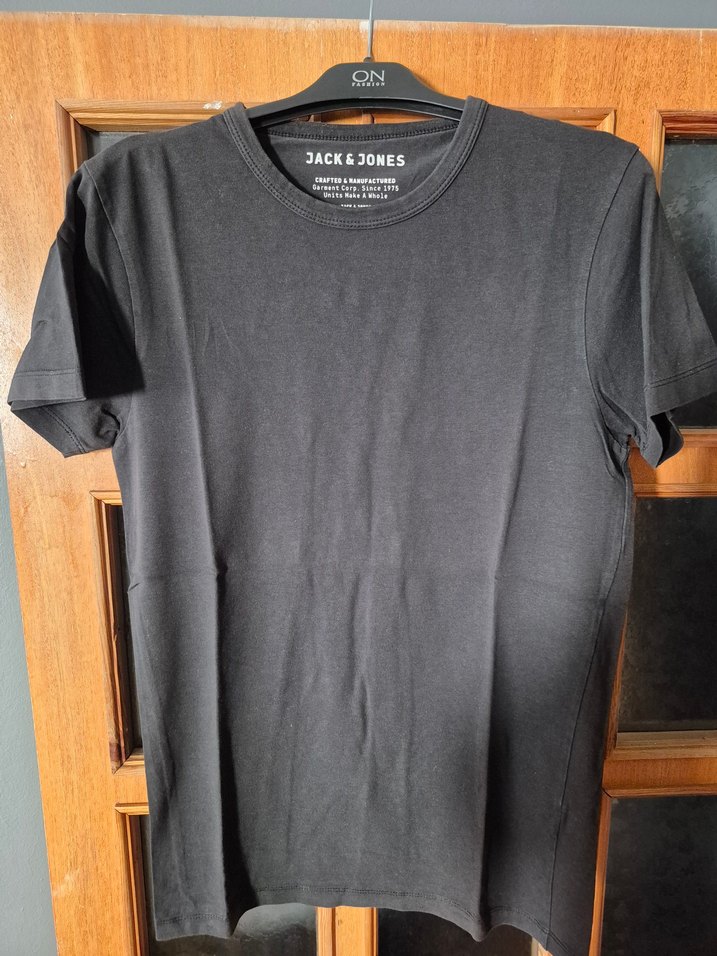 Jack & Jones markasına ait siyah baskılı, normal boyda ve dar kesim erkek tişörtü. Rahat ve günlük kullanım için uygundur.
