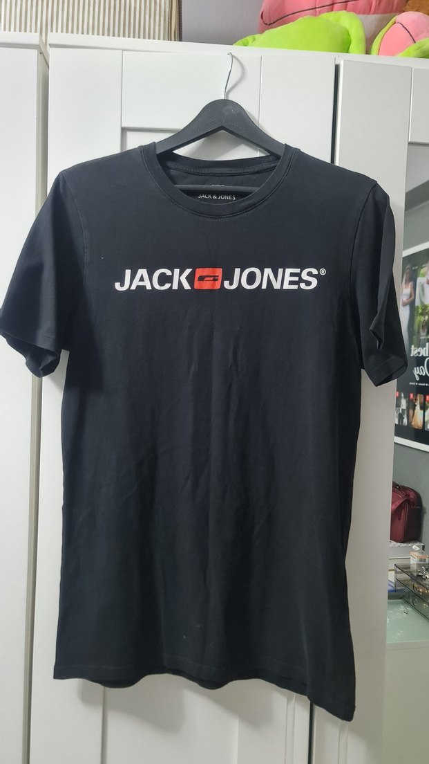 Jack & Jones baskılı siyah erkek tişört, kısa kollu ve bisiklet yaka, yumuşak yazlik kumaş.Birkac kusuru var gorsele ekledim beyazlik lekesi var sadece