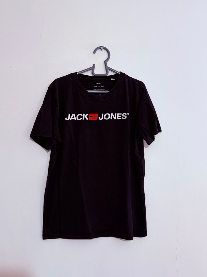 Jack & Jones siyah erkek tişört, kısa kollu ve bisiklet yaka. Yumuşak kumaştan, baskılı logo ile günlük sokak stili için rahat ve salaş kesim.