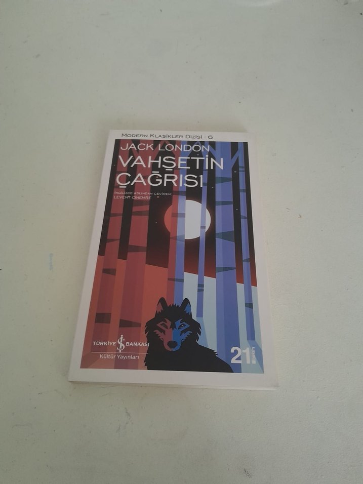 Jack London'un Vahşetin Çağrısı adlı romanı, kurt ve orman görseliyle dikkat çekiyor. Türkiye İş Bankası Kültür Yayınları tarafından yayımlandı.