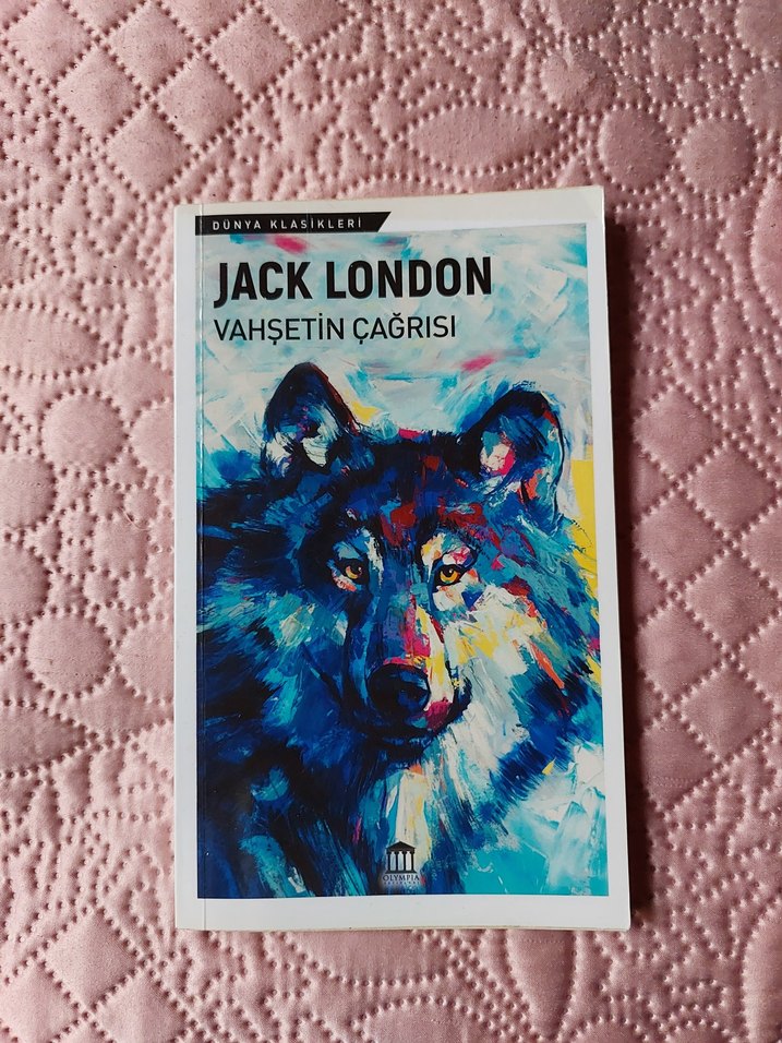 Jack London'ın klasik eseri 'Vahşetin Çağrısı' romanı, kapakta dikkat çekici bir kurt illüstrasyonu ile sunuluyor.