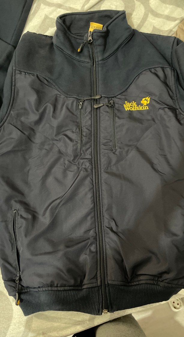 Jack Wolfskin marka siyah, fermuarlı, kolsuz ve fitted kesime sahip yelek. Yumuşak polar kumaştan, notched lapel yakalı ve dış mekan kullanımı için uygun.