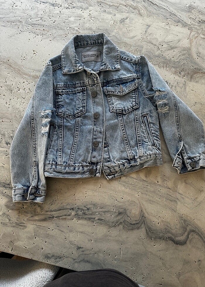 JackLions Erkek çocuk Jean Ceket 6-7 Yaş (122 cm) Yırtık Jean Ceket Orjinal Ürün