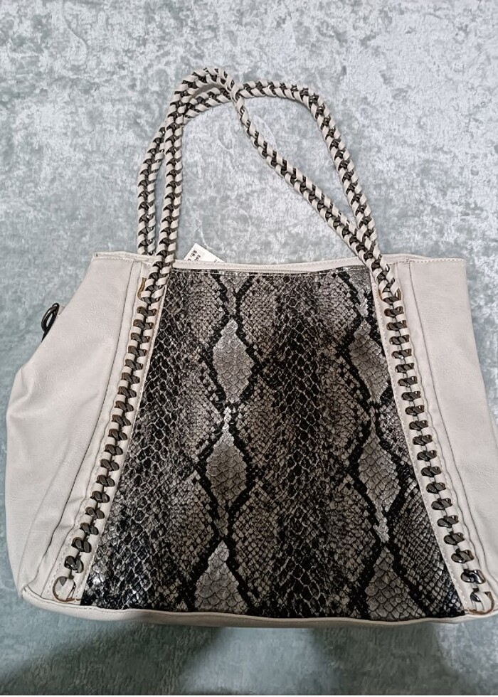 Jacqueline Kadın Çanta.Etiketli hiç kullanılmamıştır.3 bölmeli, içten fermuarlı, çok kaliteli dir. Ana renk gri.