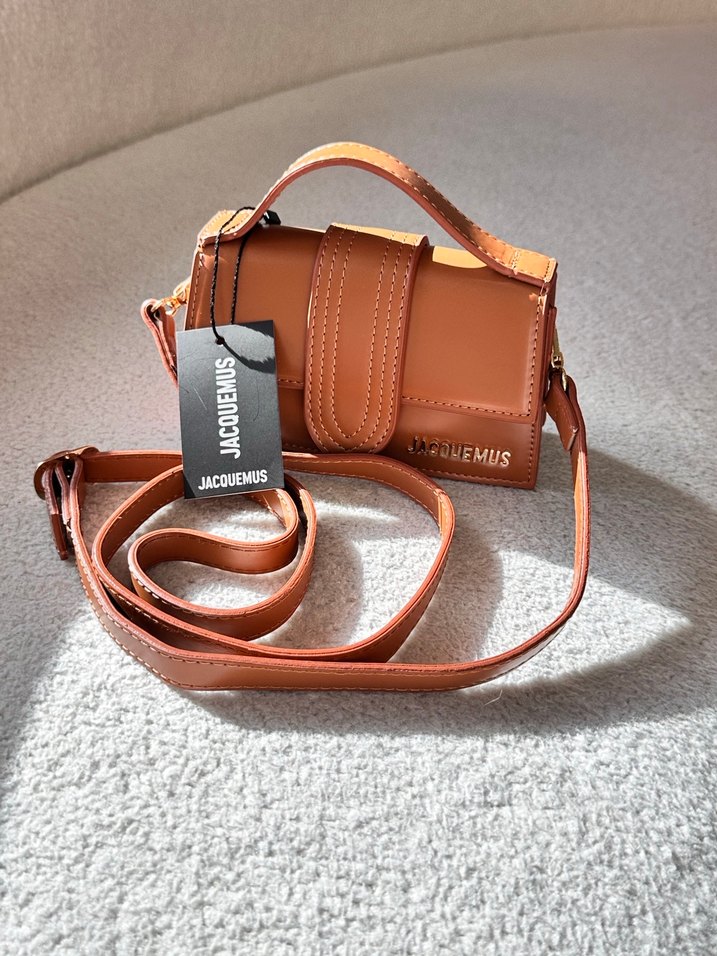 Jacquemus marka kahverengi deri kadın çanta, minimalist ve desensiz tasarıma sahiptir. Üst sap ve ayarlanabilir askısı ile sokak stiline uygun, günlük kullanıma elverişlidir. Rahat şıklık sunar.