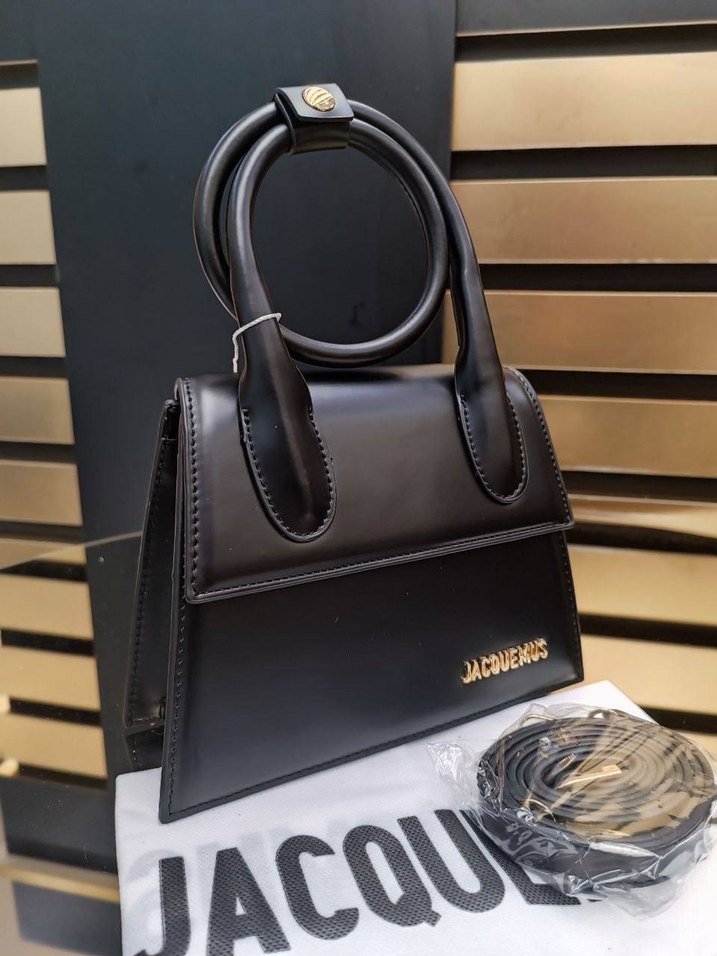 JACQUEMUS markalı siyah deri kadın çantası, tokalı ve minimalist tarzda, günlük kullanım için uygundur.