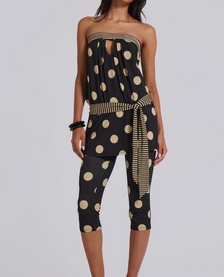 puantiye desenli, bel detaylı ve kısa kesimdir. Sentetik kumaştan, günlük ve trend sokak stili