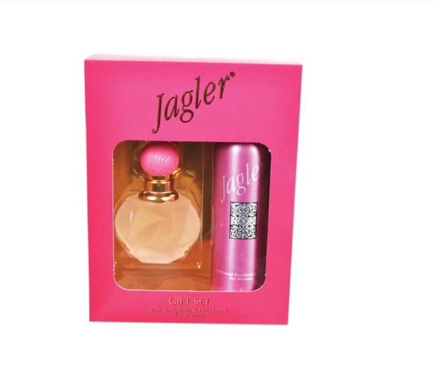 Jagler hediye seti, pembe paket içinde kadın parfümü ve deodorant içerir, günlük kullanım için uygundur.