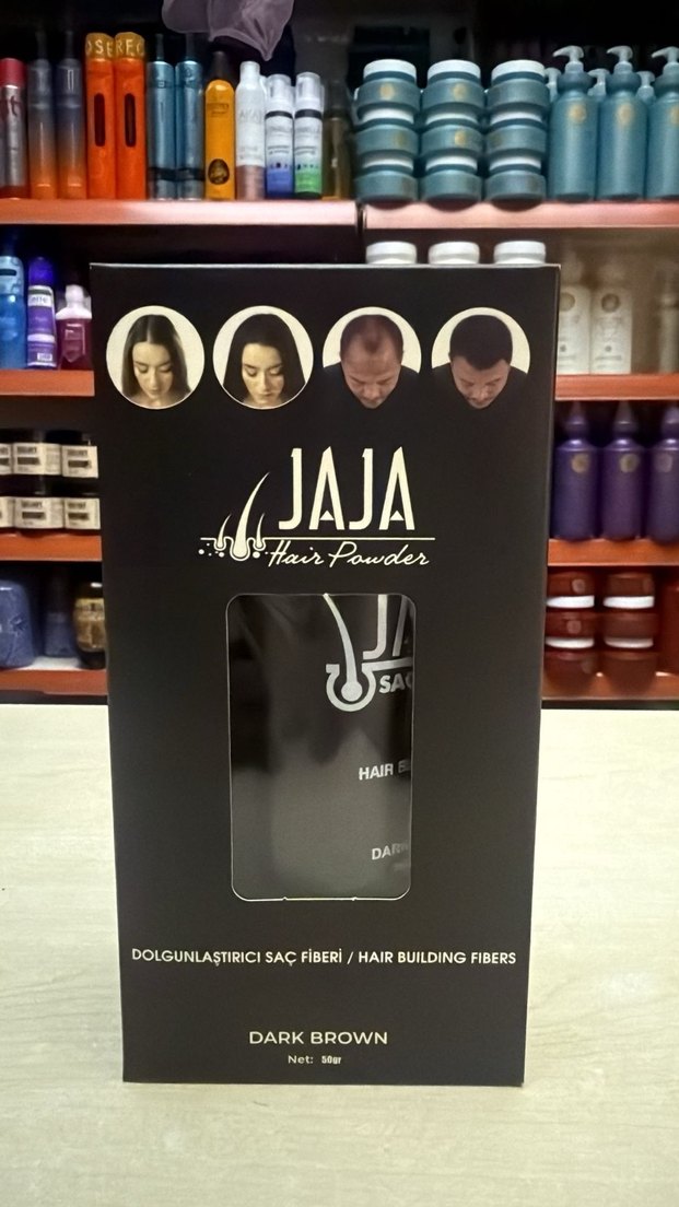 JAJA saç dolgunlaştırıcı fiber koyu kahverengi, saçlarda dolgunluk sağlar ve seyrek bölgeleri kapatır.