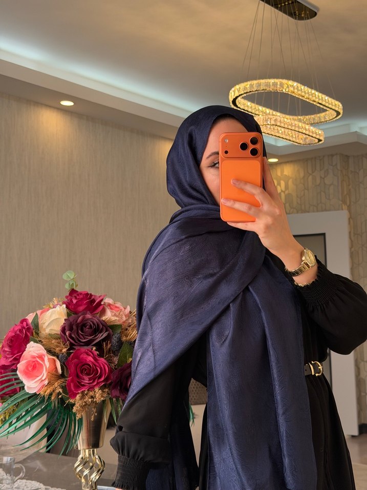 Kadınlar için mavi, ipek görünümlü ve dökümlü kumaştan yapılmış şal. Mütevazı sokak modasına bohem dokunuş katıyor.