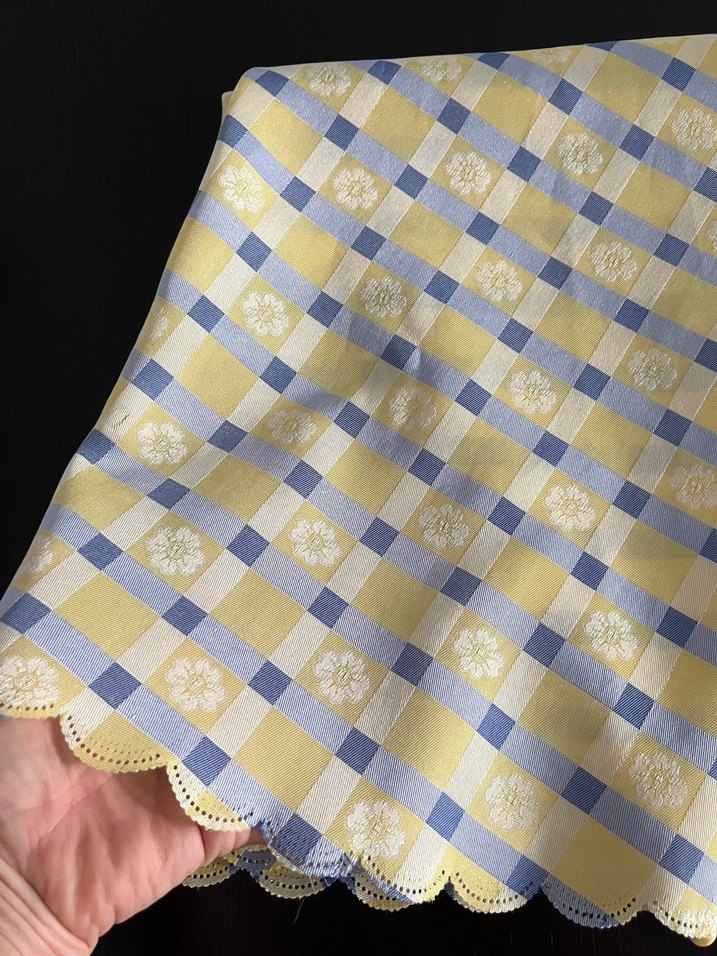 Jakarlı Dertsiz, Renkli, Pastel sarı ekose desenli, Yuvarlak Çapı 160cm. masa Örtüsü…