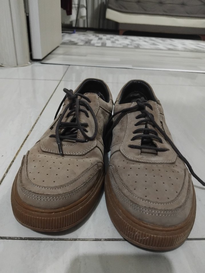 Bej süet erkek günlük ayakkabılar, gri tonlu ve desensiz sade tasarıma sahip. Sokak modasına uygun, zahmetsiz şıklık sunar. Yumuşak deri harika bir spor ayakkabı çok şık Çok kaliteli bir kaç kez giyildi yenidir yurt dışından alındı