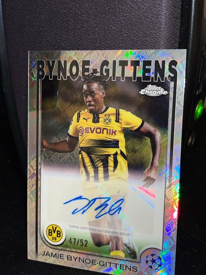 Jamie Bynoe-Gittens'in Borussia Dortmund formasıyla ve imzasıyla sınırlı sayıda (47/52) parlak kart ⚽