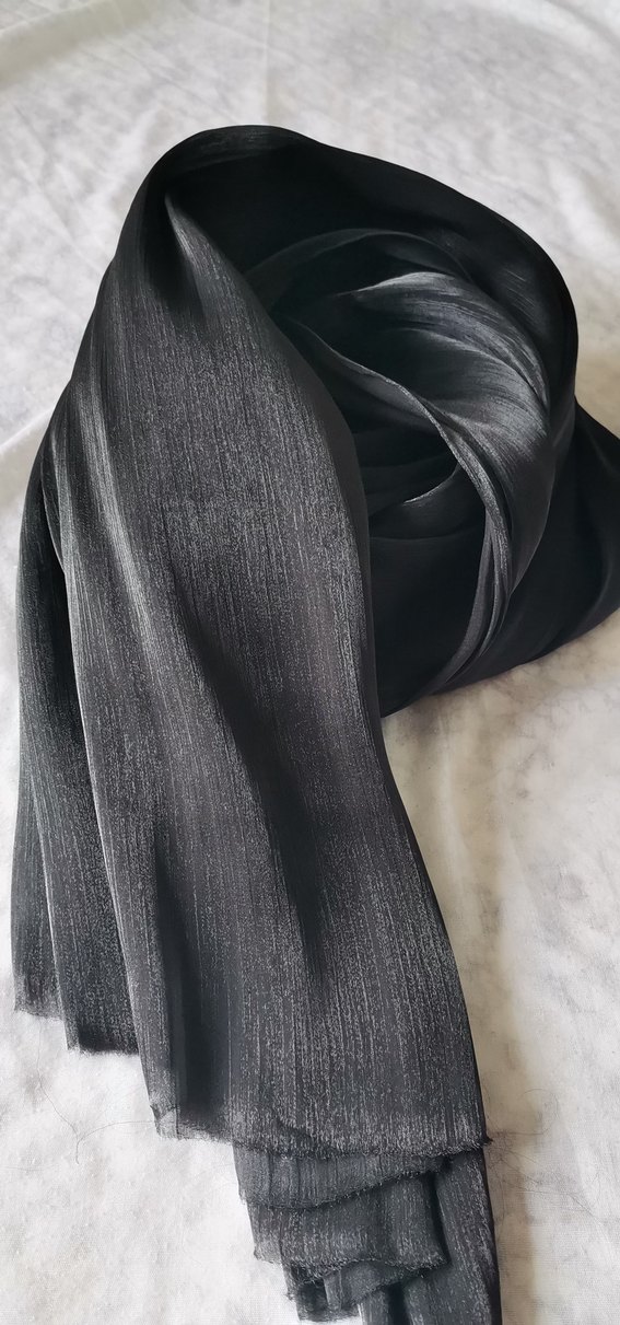 Jan jan abiye şal Siyah renkte, dökümlü tasarıma sahip kadın şalı, saten dokusuyla gotik ve avangart tarzları tamamlar. Özel kesim yanlar dikişsiz boyu 2 metre çift katlıdır #janjanabiyeşal #siyahabiyeşal