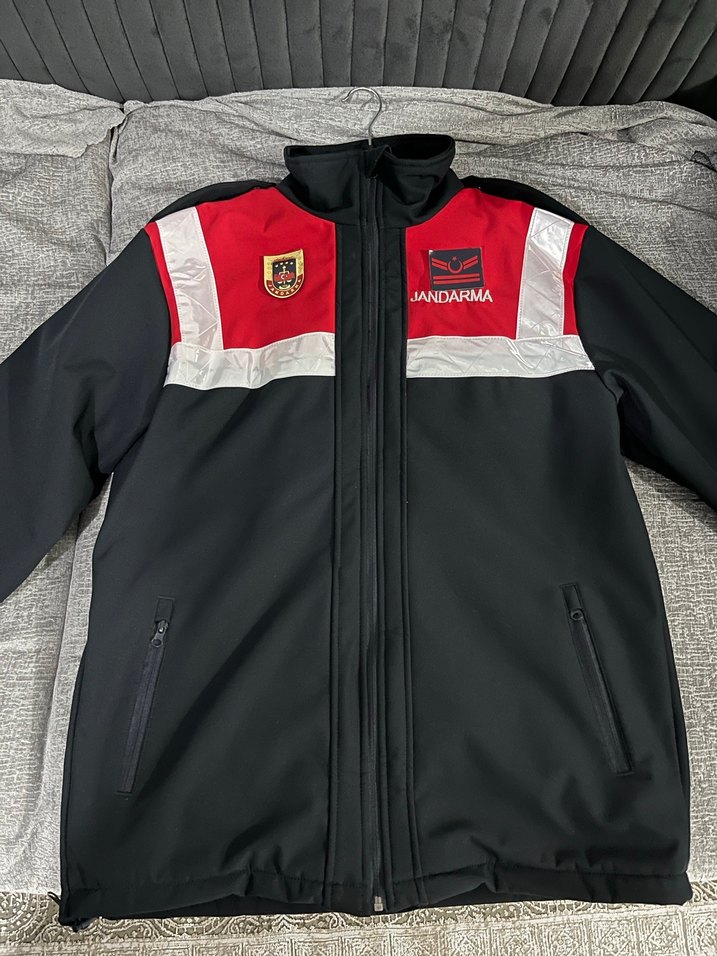 Uzun kollu, fermuarlı erkek ceket, rahat ve yumuşak kumaştan. Jandarma baskılı, kırmızı, beyaz ve gri renk bloklarıyla outdoor kullanıma uygun. *1.75 boy 95 kg olur*