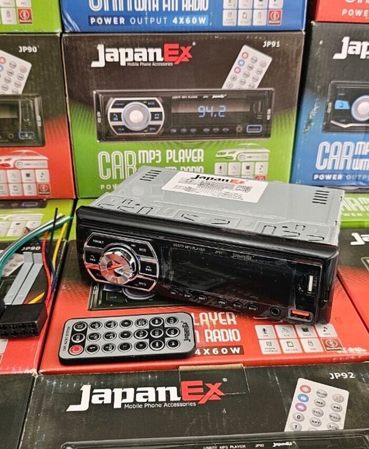 JapanEx marka renkli ekranlı oto radyo, 4x60W güç çıkışı sunar. Uzaktan kumandasıyla kolay kullanım sağlar ve MP3 çalar desteği vardır.