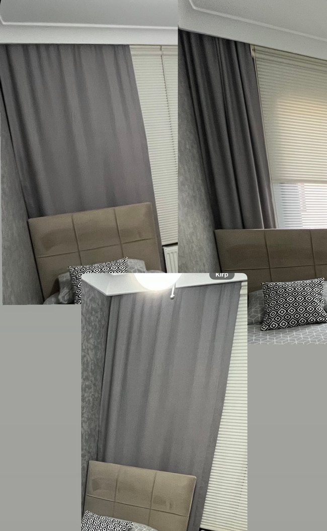 Gri renk keten kumaş fon perde pilesiz boydan perdedir ister açık ister kapalı kendiniz nasıl isterseniz şekil verirsiniz her açıdan resim eklemeye çalıştım ütü istemez görülmesi için takılmıştır tek kanat 1 adet üründür