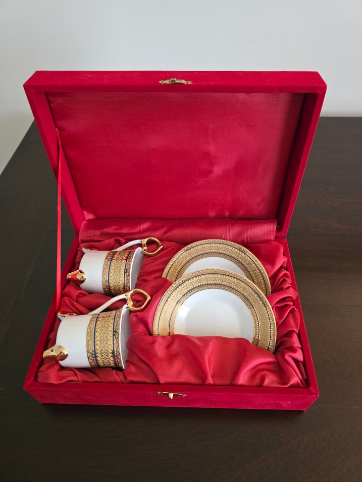 Japon 24 ayar altın vermeyli porselen 2'li fincan takımı. Daha önce kullanılmamıştır. Kutusunda özenle saklanmıştır. Her birinin altında damgası mevcuttur. Kırık, atık, çatlak, çıt vs. yoktur. Tertemiz ikili fincan takımı. Türk kahvesi boyutunda, ölçüleri resimlerde mevcuttur. İade kabul edilmemektedir. #fincantakımı #japonfincan #24k #antikaporselen #senlibenli #fincan #porselenfincan