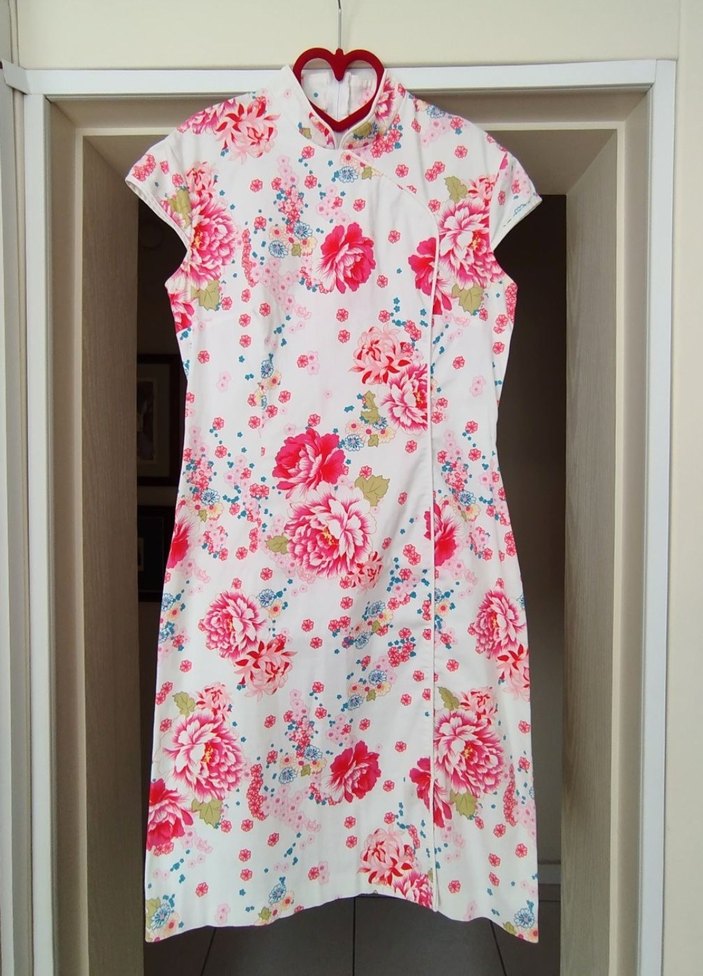 Çiçek desenli, kısa kollu, yüksek yakalı minik yırtmaçlı, likralı pamuklu bir şaheser. Zara'da almıştım ancak etiketini kesmişim. 38 bedendir ve kondisyonu mükemmeldir.