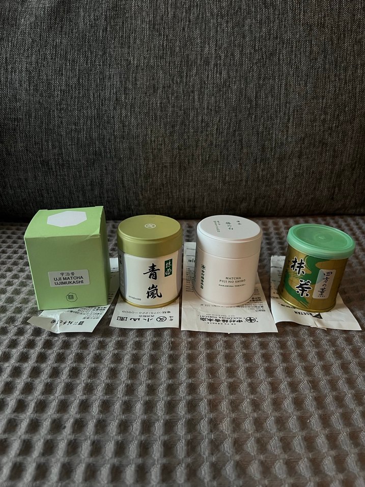 Japonya’nın en çok bilinen çay evleri Marukyu Koyamaen (40gr aoarashi), Nakamura Tokichi (30gr fuji no shiro) , Horii Shichimeien (30gr uji mukashi) ve Yamamasa Koyamaen’den (30gr yomo no kaori) ceremonial grade matchalar. 1 ay önce döndüm raf ömürleri 6 ay-8 ay arası değişiyor. Fiyatları için sorunuz