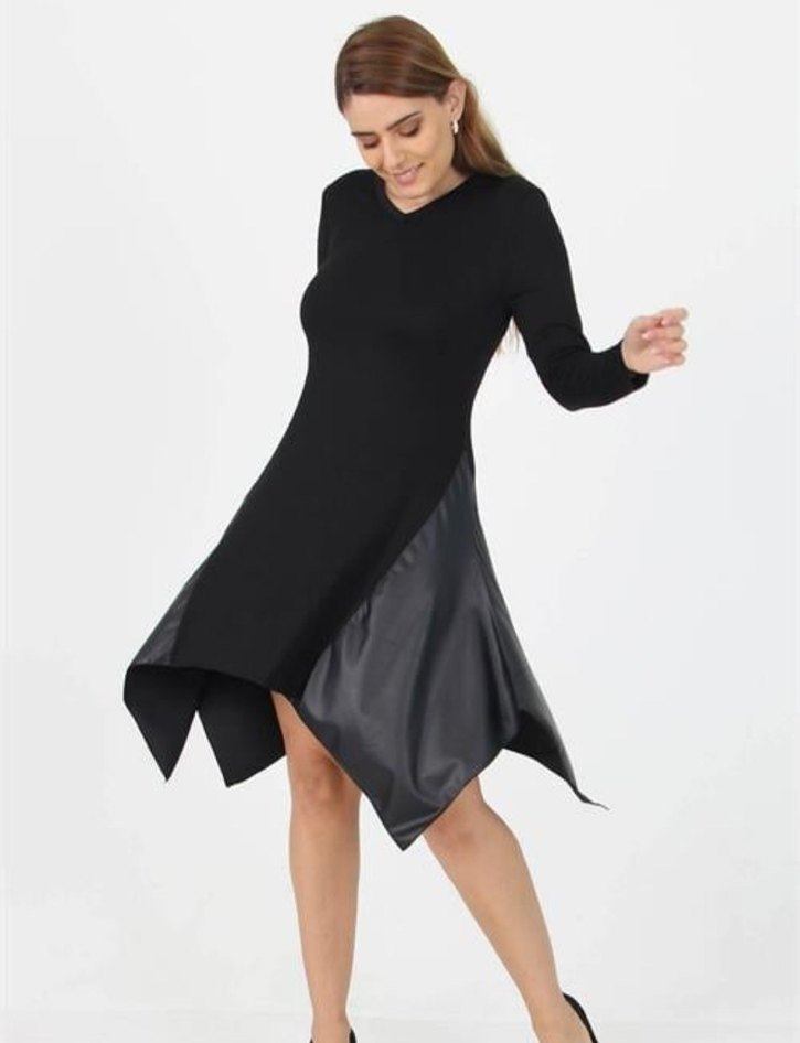 Jarin Marka,Siyah Uzun Kollu Asimetrik Kesim Elbise