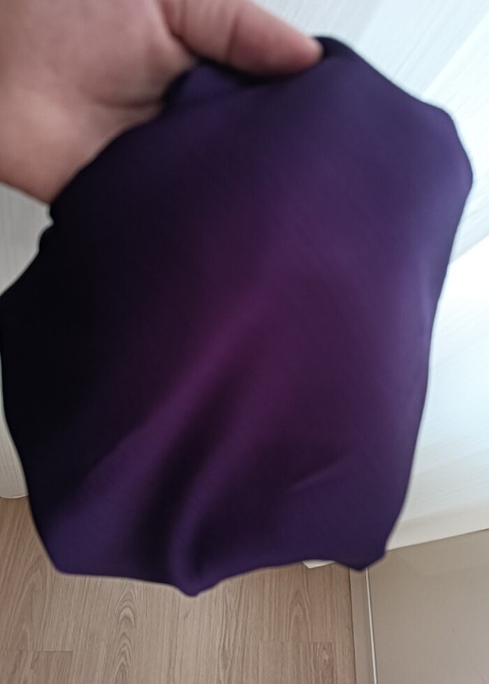 Kaymaz bir ürün dökümlü , bir defa takıldı görseldeki mankenin başındaki şalın kumaşındandar koyu mor rengi foto da açık çıkmış