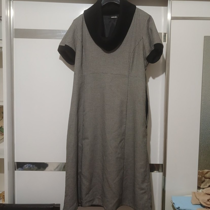 kol altından kol altına 49 cm boy 102 cm yaka ve kol ağzı triko örgü. astarli yandan cepli şık elbise