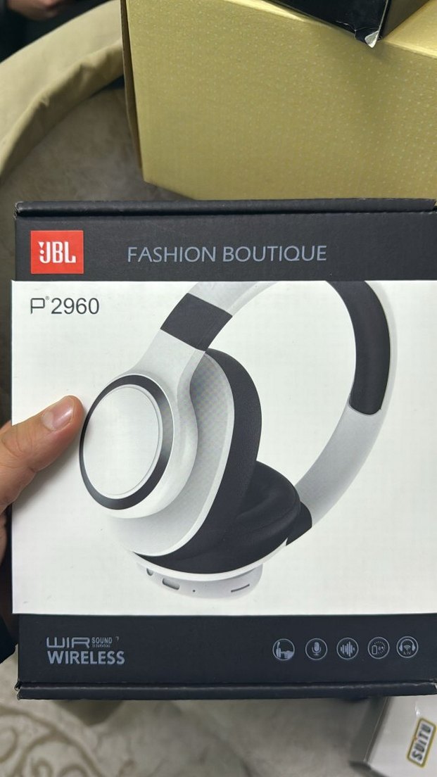 JBL P2960 kablosuz kulaklık, beyaz ve gri tasarım ile rahat kulak yastıkları sunar. Kablosuz bağlantı ve şık görünüm sağlar.