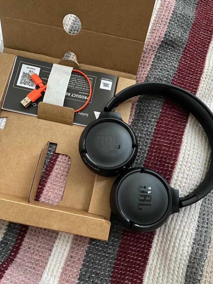 JBL kablosuz kulaklık, siyah renkte ve konforlu kulak pedlerine sahip. Kompakt şarj kablosu ile birlikte gelir. Net ses ve taşınabilirlik sağlar .2 defa kullanıldı sadece nişanlıma almıştım ebat olarak küçük geldiği için satıyorum.