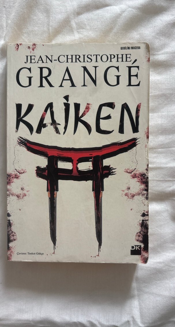 Jean-Christophe Grangé'nin 'Kaiken' adlı romanı, kapağında kırmızı ve siyah renklerde stilize edilmiş bir torii kapısı tasarımı bulunuyor. Çevirmen Tanikut Gökçe.