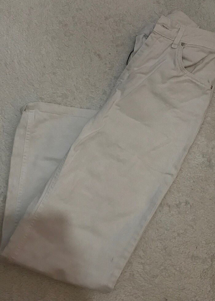 cok hevesle aldıgım ama asla beyaz giyemedigim hicbir kusuru olmayan pantolon milladan almıstım wide leg bir pantolon