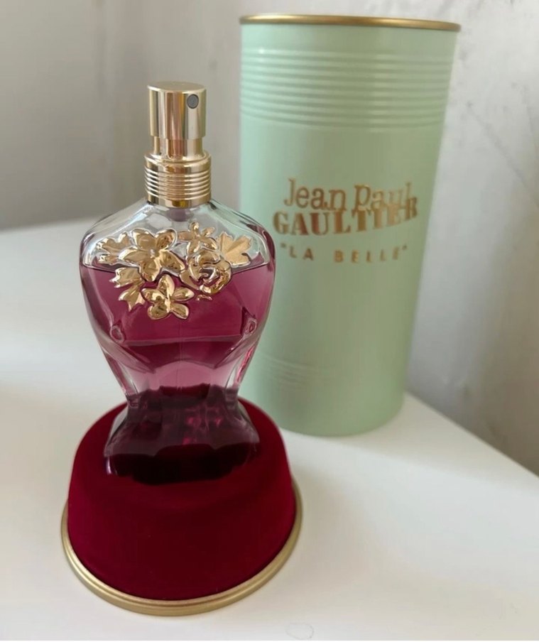 ürün ithaldir avrupadan getirdiğim için iade kabul etmiyorum Jean Paul Gaultier kadın parfümü, altın renkli çiçek detayları ve koyu mor sıvı içeren özel tasarım şişede. Yeşil silindirik kutu ile birlikte. Armutun ferah kokusu ve vanilyanın alıcılığı ile bütün gözler üzerinizde.