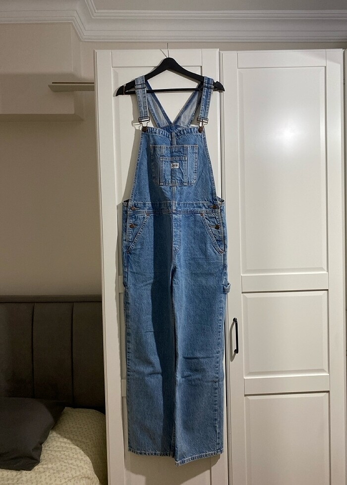 Hiç kullanılmadı (L) beden jean salopet rengi mavi hiç bir kusuru bulunmamaktadır
