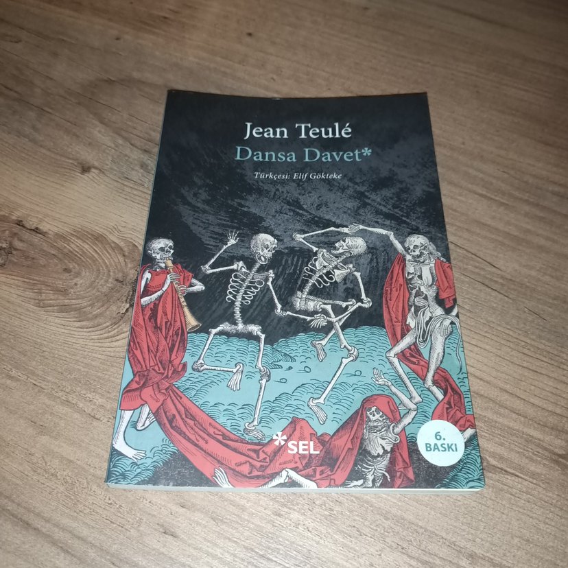 Jean Teulé'nin "Dansa Davet" adlı romanı, iskelet temalı karanlık kapak tasarımıyla. Elif Göktek tarafından çevrilmiş, Sel Yayınları 6. baskı.