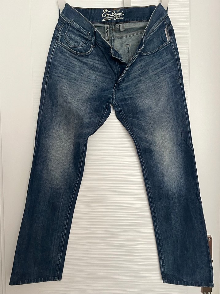 Jeans Edcs by Esprit 31/32. Çok temiz. Küçücük bir defosu var arka cepte hafif bir aşınma, son fotoğrafa ekledim, nerdeyse belli olmuyor. Düğmeliydi, fermuarlıya dönüştürüldü.