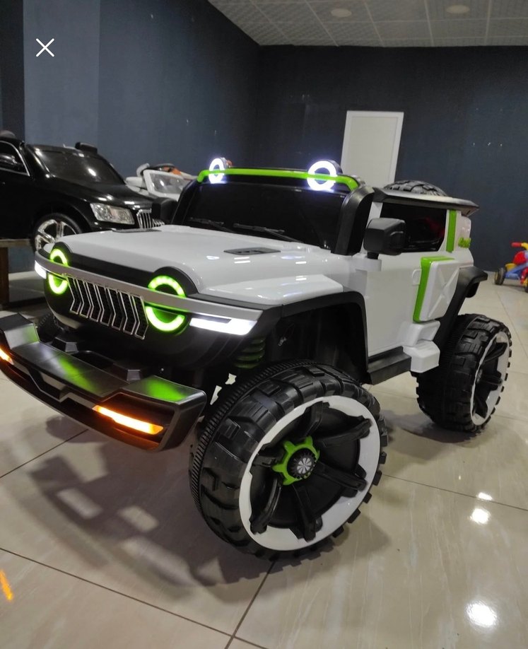 Beyaz renkli elektrikli oyuncak araba, renkli LED ışıklarla donatılmıştır. Büyük ve dayanıklı lastiklere sahiptir.