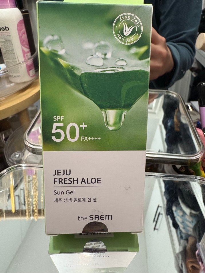 The SAEM'in JEJU Fresh Aloe Güneş Jeli, SPF 50+ ve PA++++ koruma sağlar. Aloe özlü ferahlatıcı ve yatıştırıcı dokusu vardır.