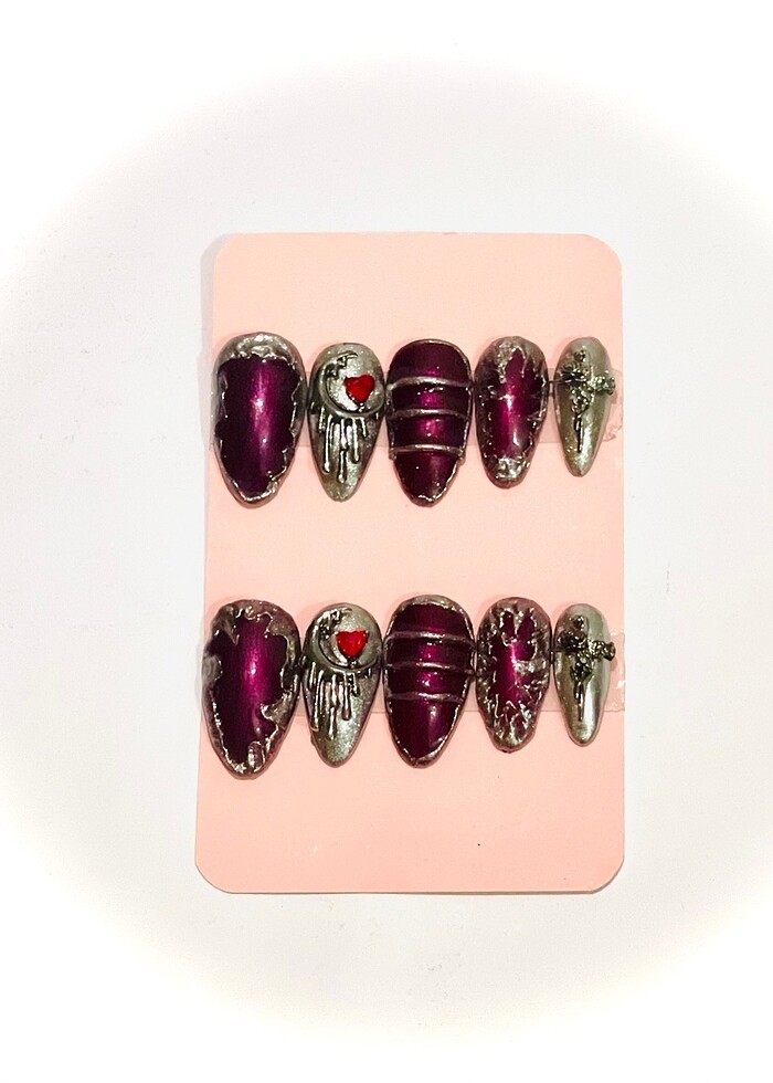 Paket içeriği 10 adet takma tırnak 12’li tırnak yapıştırıcısı Törpü Alkol mendil Portakal çubuğu Tırnak ölçünüze göre sipariş oluşturunuz