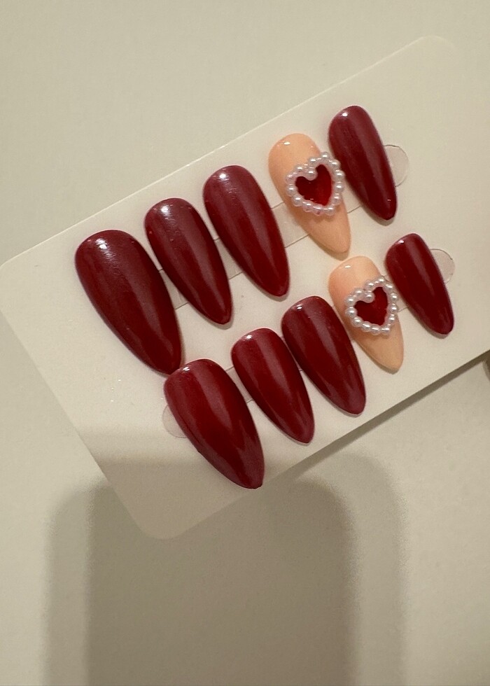 Paket içerigi : 10 adet tirnak, tirnak bakim yapi, portakal çubugu, 12 adet çift tarafli bant -tüysüz mendil ,mini buffer. uzunlugunu ve tirnak modelini dilediginiz gibi seçebilirsiniz. kisiye özel, tirnak olçülerinize göre yapilmaktadir. dayanikli ve uzun ömürlüdür. tirnaklariniz Jel Tirnak + Base Coat + Kalici Oje ve Top Coat ile hazirlanmaktadir. #takmatirnak #kalicioje #jeltirnak #nailart