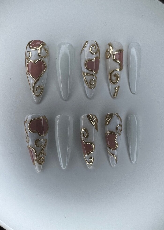 Paket içerigi : 10 adet tirnak, tirnak bakim yapi, portakal çubugu, 12 adet çift tarafli bant -tüysüz mendil ,mini buffer. uzunlugunu ve tirnak modelini dilediginiz gibi seçebilirsiniz. kisiye özel, tirnak olçülerinize göre yapilmaktadir. dayanikli ve uzun ömürlüdür. tirnaklariniz Jel Tirnak + Base Coat + Kalici Oje ve Top Coat ile hazirlanmaktadir. #takmatirnak #kalicioje #jeltirnak #nailart