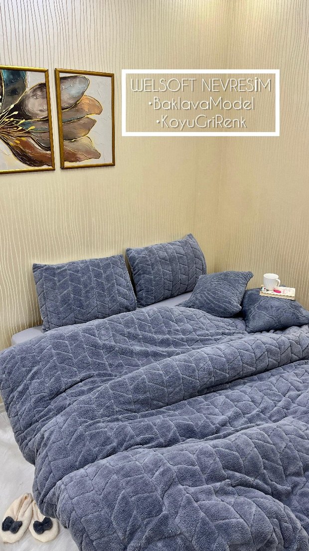 JELSOFT nevresim takımı, koyu gri renkte ve baklava desenli, yumuşak ve konforlu bir dokuma sunar. ️