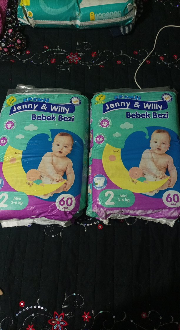 3-6 kg bebekler için Jenny & Willy Mini bebek bezi, 60 adet. Hassas ciltler için yumuşak ve konforlu.