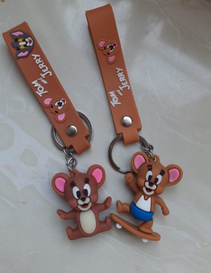 Renkli kahverengi elastik kayışlı Jerry figürlü anahtarlıklar, rahat sokak stiline uygun. 2 adet fiyatıdir