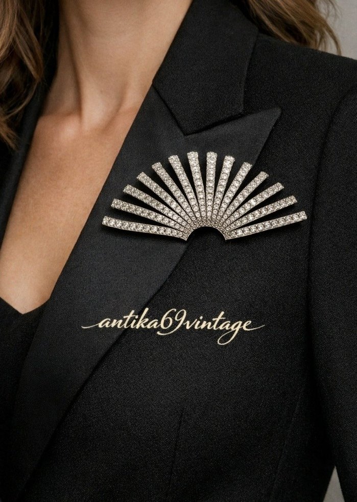 Vintage tarzda, swaroski taslı yelpaze detayli muhtesem bir broş. çok havalı şık ve özel bir parça