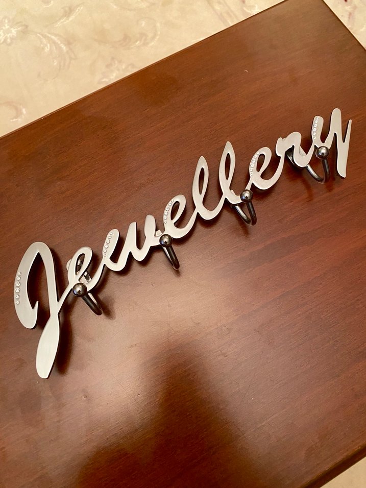 J W E E Y  harflerinde Taşlar vardır. Duvara asmak için halkaları vardır. Dört tane askısı vardır. Sağlam ve defosuzdur. Marka temsilidir.