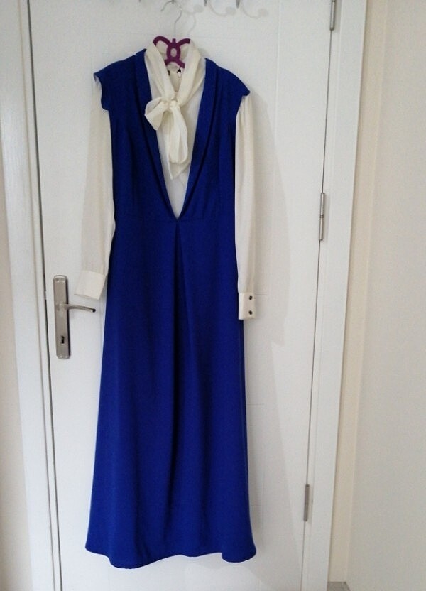 Jile elbise Boyu 138cm, iki kol arası 50cm..gömlekle birlikte.. Gömlek iki kol arası 50cm,boyu ise 60,5cm