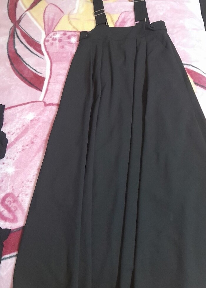 Çok tatlı 1-2 kere giyildi,yıkandı.Artık bana olmadığını düşündüğüm için satıyorum bel kısmı,uzunluğu ve kısalığı ayarlanabilir.Son resimdede göründüğü gibi küçük bi leke var çıkarmı çıkmazı bilmiyorum ama belli olmuyor.